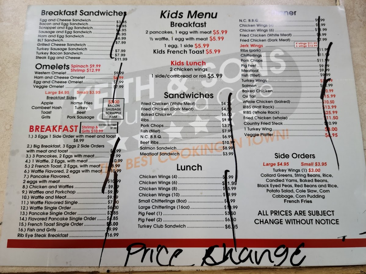 Keith & Sons Soul Food Cafe Menu